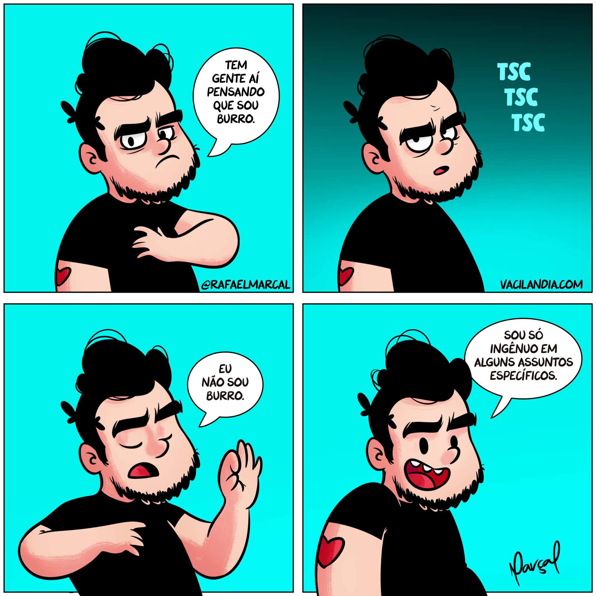 Bocó não é burro Rafael Marçalnov 13, 2019fev 14, 2020 BocósTirinha bocóburriceburroIngenuidadeingênuointeligênciainteligentequadrinhostirinhatirinhas Bocó e… tem dia Rafael Marçalnov 12, 2019fev 14, 2020 BocósTirinha bocóburnoutcabeçacamacansaçocansadocomédiadormirestafahumorprocrastinarquadrinhostirinhatirinhastrabalhartrabalho Bocó e Curso de Humor (comédia) E seguem imagens pra stickers abaixo :D Rafael Marçalnov 8, 2019fev 14, 2020 BocósTirinha badumtssbocócomédiacursohumorhumor infameinfameprofessorquadrinhostirinhatirinhastudumpshtudumtss Bocó pegando um bronze saudável Rafael Marçalnov 6, 2019fev 14, 2020 BocósTirinha areiabrancobronzeadocalorcomédiahorário de verãohumormemespálidopraiaquadrinhossoltirinhatirinhasverão Bocós e o cômodo favorito Rafael Marçalnov 5, 2019fev 14, 2020 BocósTirinha bocóscasacomercomidacômodogeladeiragordicehumorinteligentememesquadrinhostirinhatirinhaswebcomic Bocó odeia o calor? Imagina! Rafael Marçalnov 4, 2019fev 14, 2020 BocósTirinha bocócalorclimacomédiafriohumoródioquadrinhostirinhatirinhas Bocós e a Aranha (redesenho de 2018) Rafael Marçalnov 1, 2019fev 14, 2020 BocósTirinha aracnofobiaaranhafobiahqhumormedomemesquadrinhostirinhatirinhaswebcomic Bocós e o Dia das Bruxas (halloween) Rafael Marçalout 31, 2019fev 14, 2020 BocósTirinha dia das bruxashalloweenmemesquadrinhosSacitirinhatirinhasWebcomic. hq. humor Bocó e o Smartwatch parte 3 Rafael Marçalout 30, 2019fev 14, 2020 BocósTirinha bocóexercíciofitnessgeekmonitor cardíacoquadrinhossmartwatchsonotirinhatirinhaswebcomic Bocó e aquela que ele estava vendo séries Rafael Marçalout 21, 2019fev 14, 2020 BocósTirinha bocóscomédiafriendshumorinstagramlistamemesnetflixquadrinhossériestele cinetirinhatirinhastop 1011121314 Pesquisar Search for: Entre para o Clube Séries Licença O trabalho Vacilândia - Todo o humor e o amor de Rafael Marçal de Rafael Marçal foi licenciado com uma Licença Creative Commons - Atribuição - Não Comercial - Sem Derivados 3.0 Não Adaptada.Podem estar disponíveis autorizações adicionais ao âmbito desta licença em Contato. Digite seu e-mail… Assinar Assinar