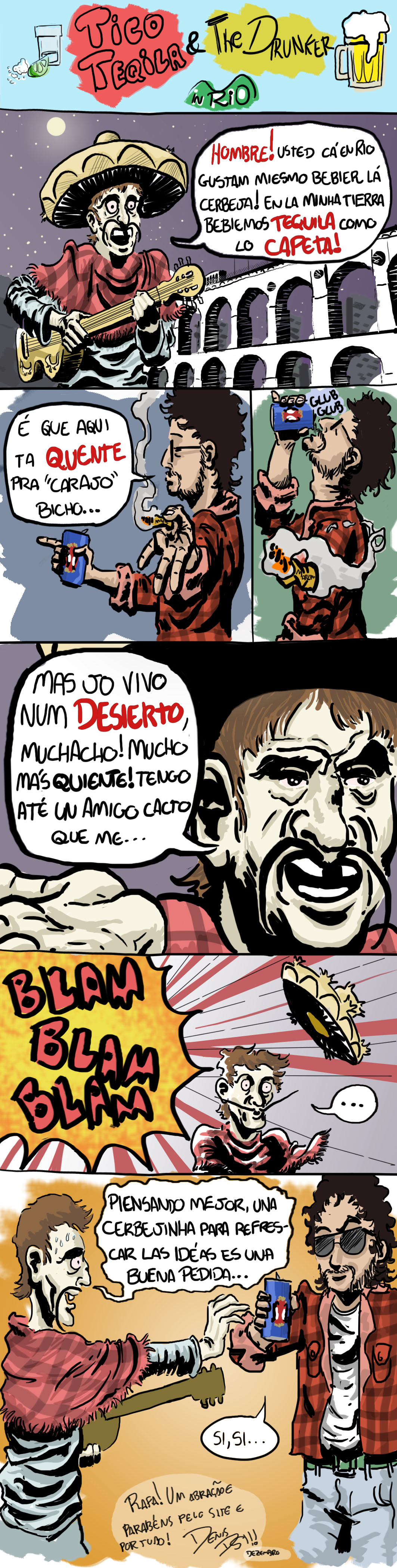 Esse aí é o Drunker, num crossover com o Tico, o autor é o Denis Mello (Sobrenomezinho danado =P) e ele eu conheço antes mesmo de pensar em fazer tirinhas, ele também não aspirava a nada, nem na faculdade estava ainda, mas ambos compartilhávamos a paixão por quadrinhos. Ter um trabalho seu aqui é perfeito, cara! Obrigado mesmo, de novo e de novo.