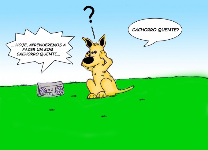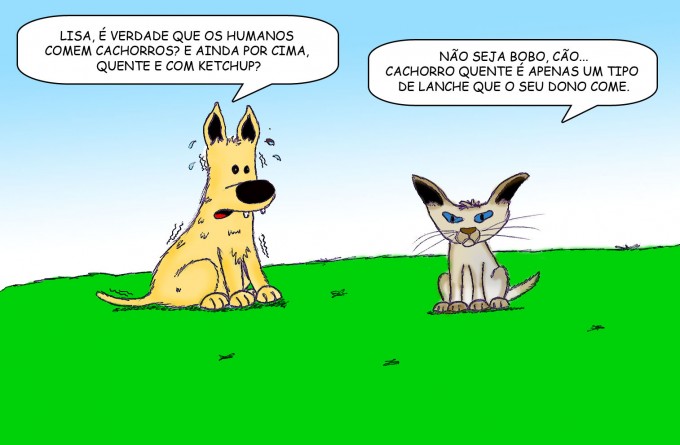 – Tudo bem, parei, mas... E essa linguiça aí? Tem jeito? Ração todo dia enjoa.