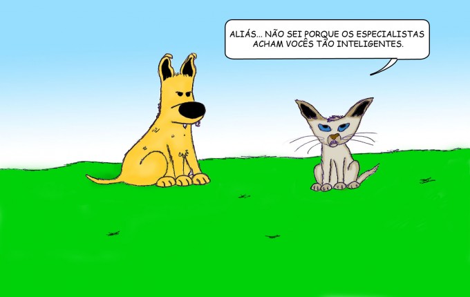 – Não vem, não. Seu conceito de banho é completamente outro. Acha que lamber o chibiu é banho, isso eu também faço. Quero ver você entrar numa tina d'água com sabão antipulgas.